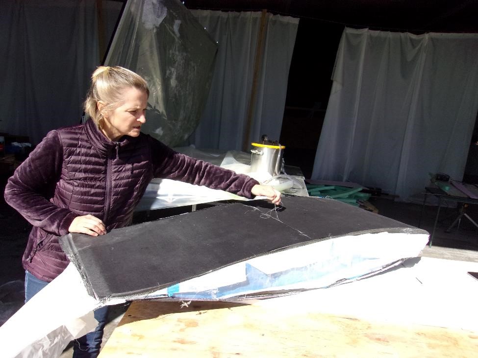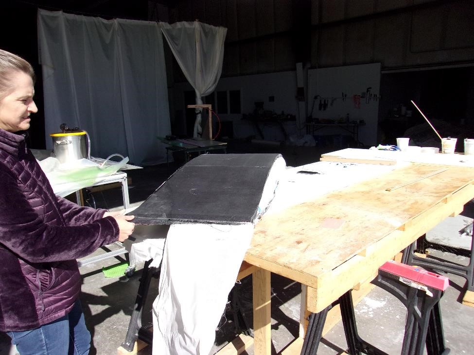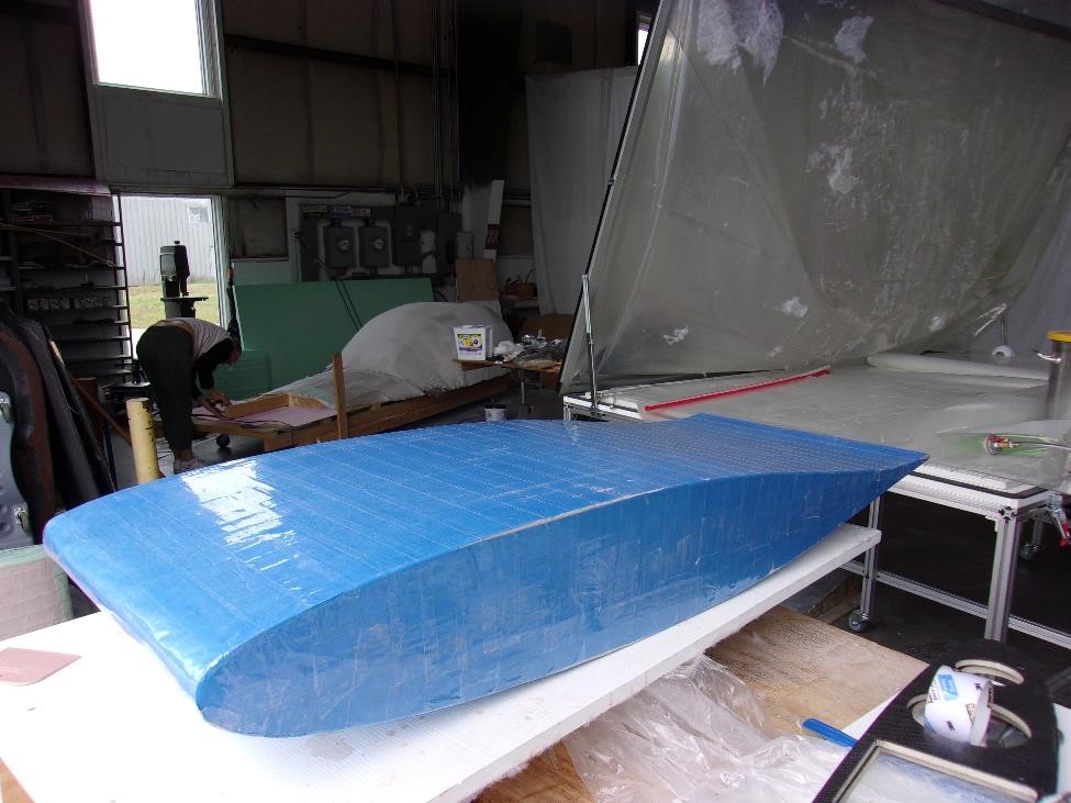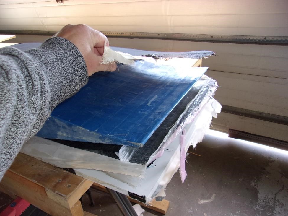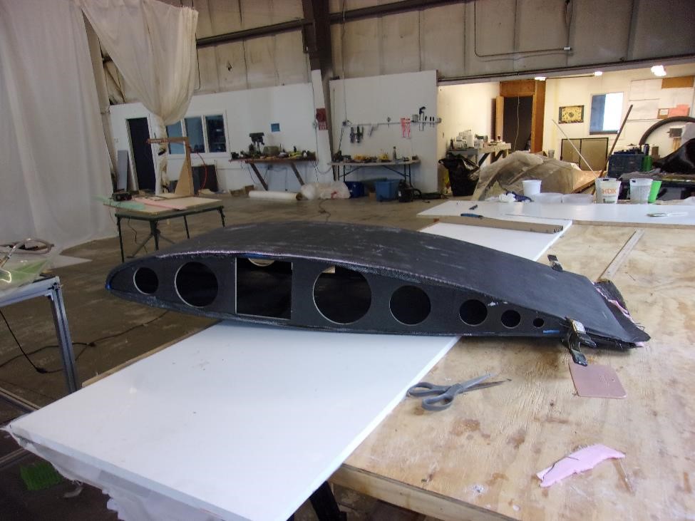 Каждый из секций мы укроем вот точно таким же комплектом показанным выше. Заделаем швы лентой. Секционно выглядеть все будет так: два метра длины или четыре блока на элероны, еще два метра длины или четыре блока на закрылки, метр цельного или два блока до оси симметрии. сверху мы все это покроем однонаправленным полотном длиной в 5 м и шириной в 1300 мм (хорды). Это даст нам четкую верхнюю обшивку и кромку нашего крыла. Нижняя же обшивка будет более сложной -