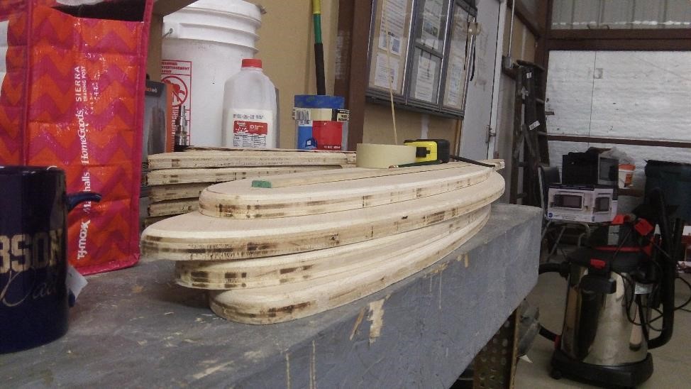 То есть просто из многослойной фанеры по шаблонам которые мы в самом начале сделали как лазерную подрезку - мы напилили уже настоящих нервюр , обожгли зачистили и установили на столешницы. Потом как нибудь я покажу что же из этих наборов получается
