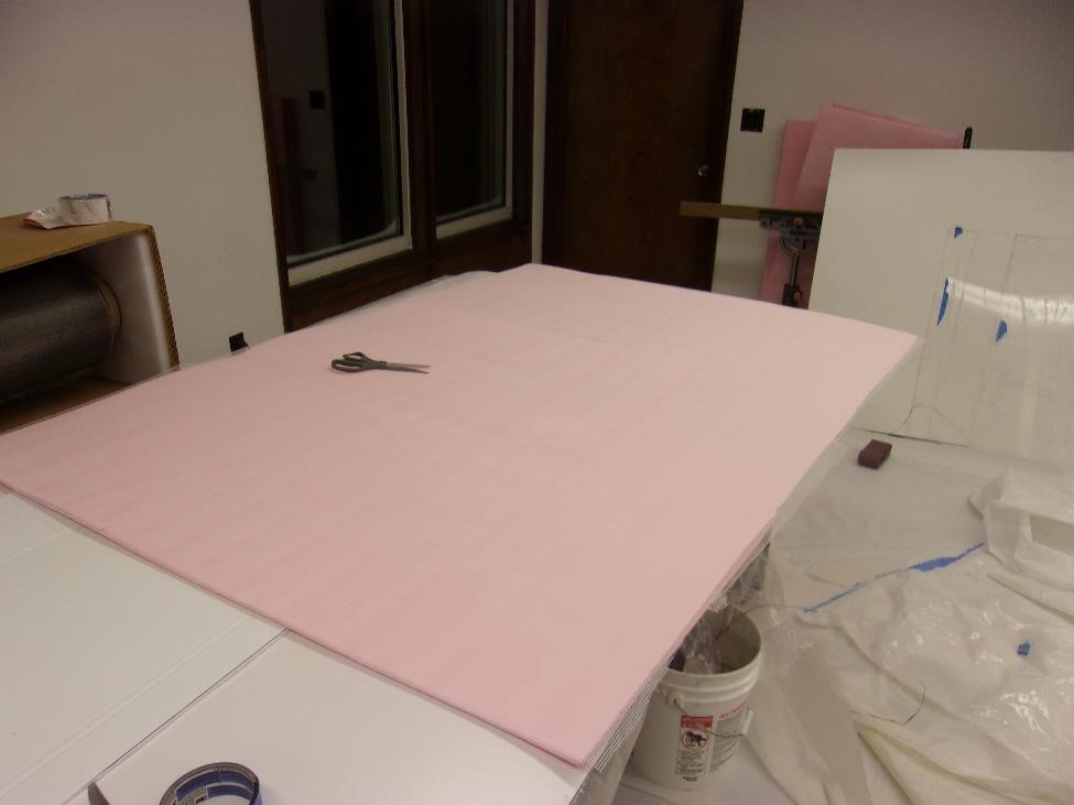 Я подготовил "рабочее место" и установил все секции материалов по нужным размерам. Завтра с утричка буду делатЬ этот сандвич с армированным пенопластом в режиме сборки Кроме стеклотканной арматуры под наш сандвич я нашел еще гофрированный пластик - никогда не видел ничего подобного. Это панель из полипропилена надо будет проверить свойства но похоже - клеиться он к сандвичу не будет На всякий случай конечно промажу еще и вазелином от греха. Идея использовать этот гофр как я использовал оргстекло для панелей. Основа для укладки сандвича под обшивку крыла