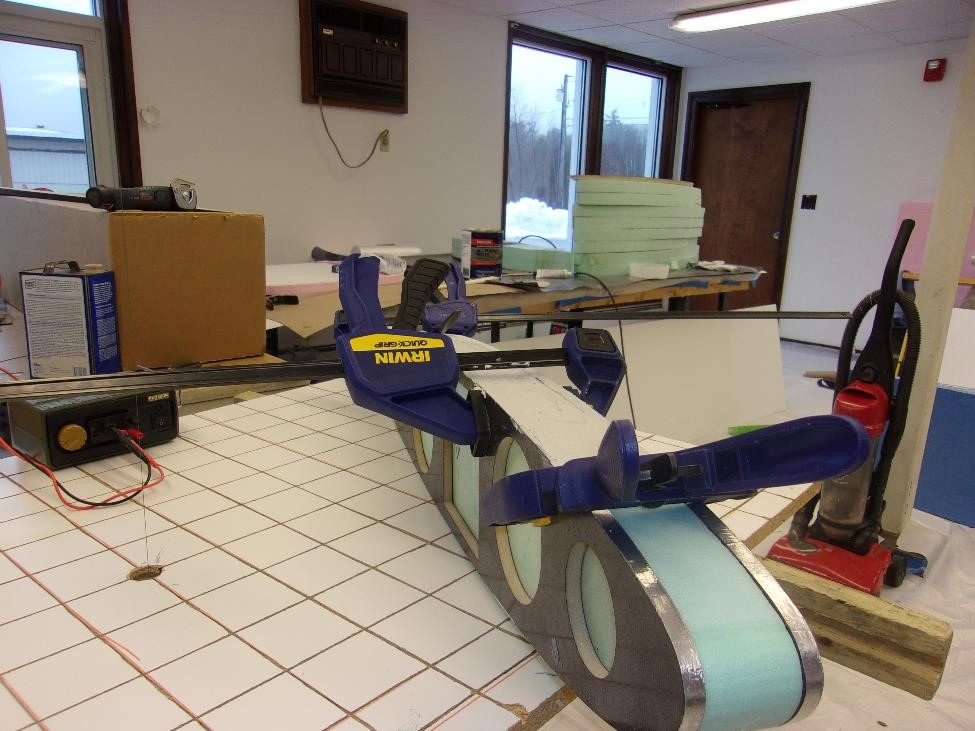 Замазка эта конечно правильно пахнет, и когда твердеет - становится железобетонная. Но долго там с ней находиться невозможно - дышать совершенно нечем. В общем решил производство всего болванчика завершить поутру. Но все необхосимые замеры и выкройки уже селаны