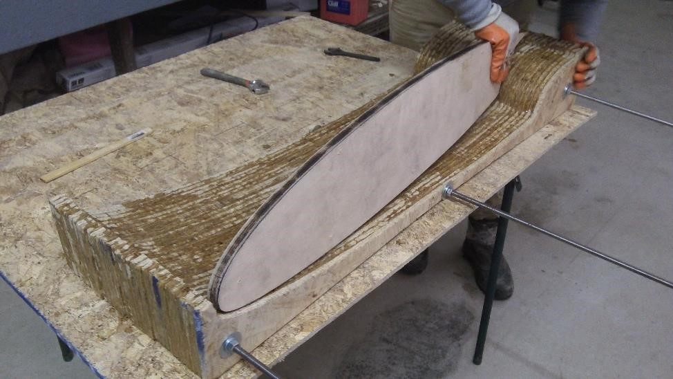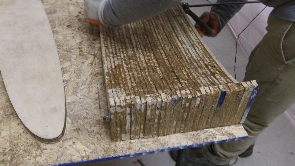 А вот уже эти склеенные вместе слои мы стягиваем тремя стержнями воедино И конечно же проверяем чтобы все 30 были более менее в одной упряжке