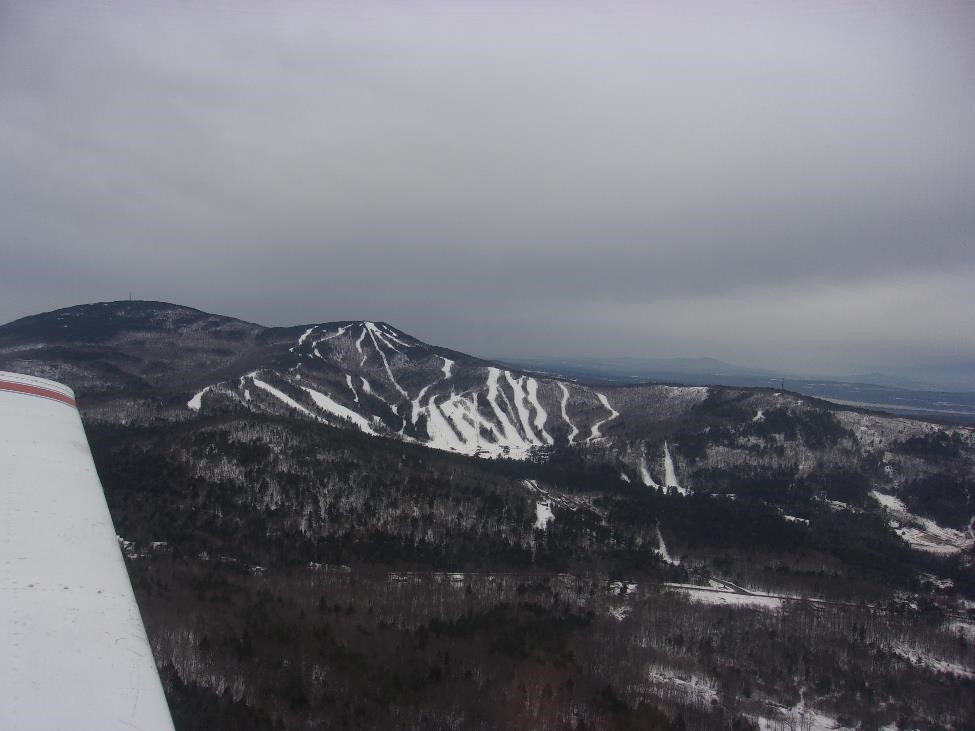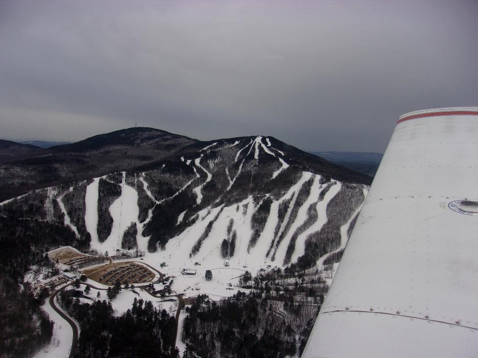 Ну а побывав "в небе" над горочкой захотелось спуститься пониже и покататься самому Действительно захватывающий вид отдыха - целый день на свежем воздухе вокруг детки самых разных возрастов - не чувствуешь себя совсем стареньким Как видите на схеме склонов горы - высшая точка 2900 фт. И в общем прямо от этой горки на северо-запад 5 миль - уже зона посадки нашей ВПП 26. То есть уитричком я сделал как раз кружочек над горочкой на высоте в 3500 и полетел восвоиясси