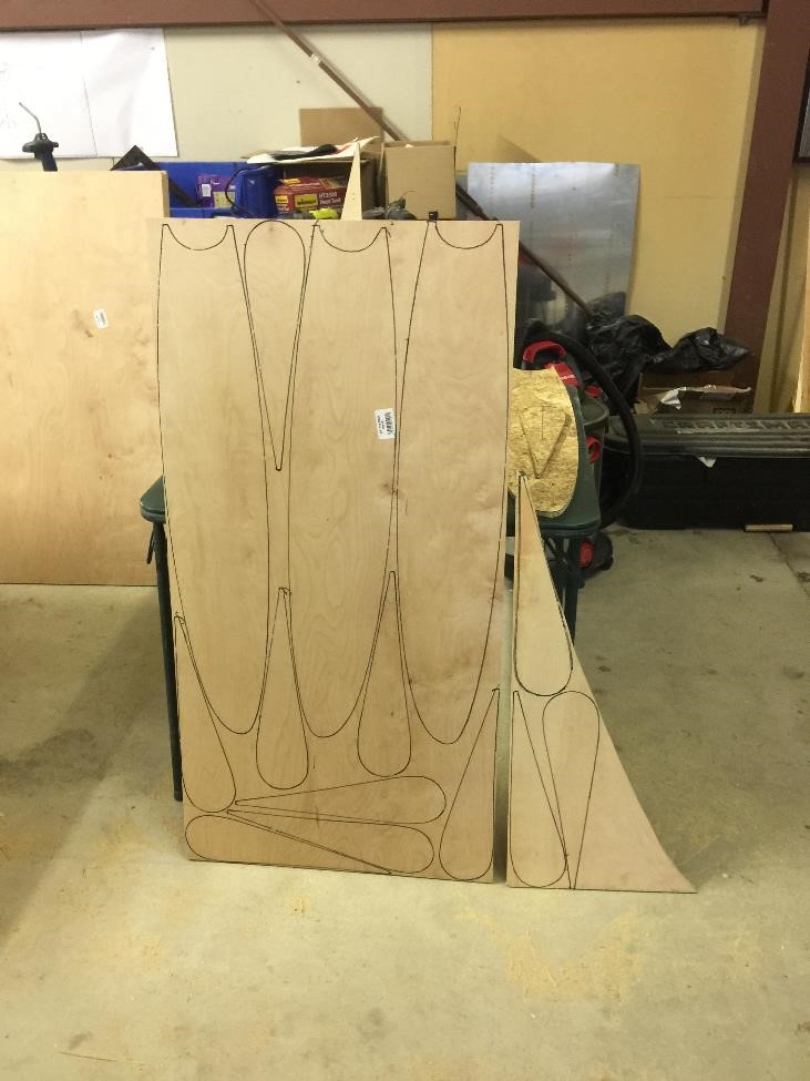 Когда мы с шаблонов нарисовали свои профиля они получились на листе фанеры вот такими