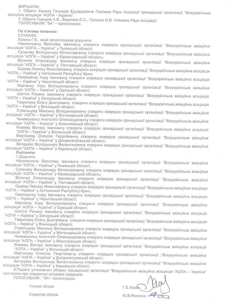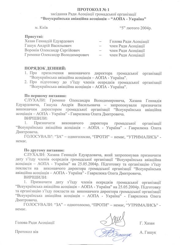 Как видно из представленных документов, руководителем АОПА-Украина, имеющим право подписывать документы является Гордеев В.А. Все другие лица, действующие от имени организации, должны предоставить ДОВЕРЕННОСТЬ подписанную руководителем, коим согласно регистратора является Гордеев В.А. С Уставом организации также можно ознакомиться здесь: http://forum.privat.aero/viewtopic.php?f=34&t=100&start=50