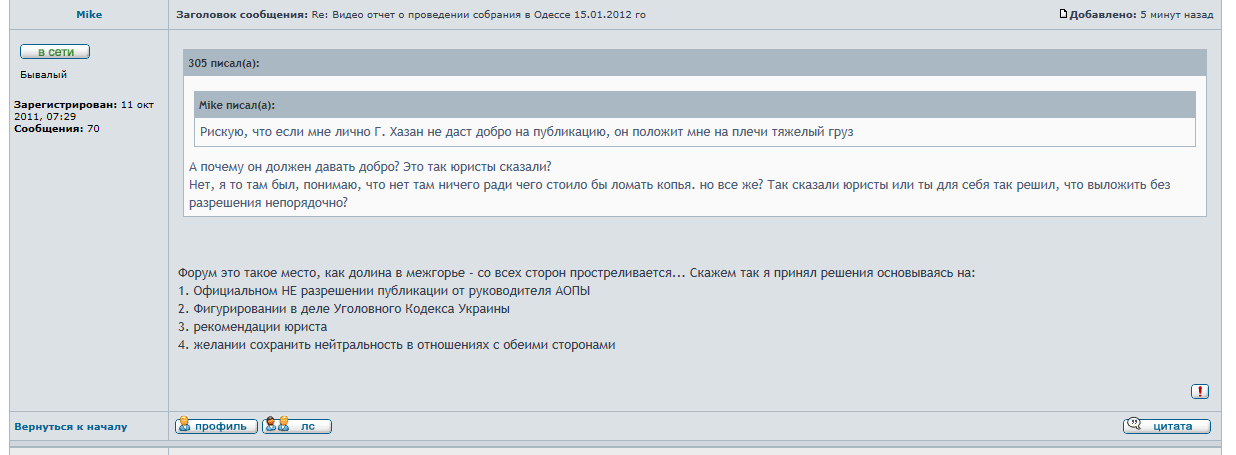 Заголовок сообщения: Re: Видео отчет о проведении собрания в Одессе 15.01.2012 го