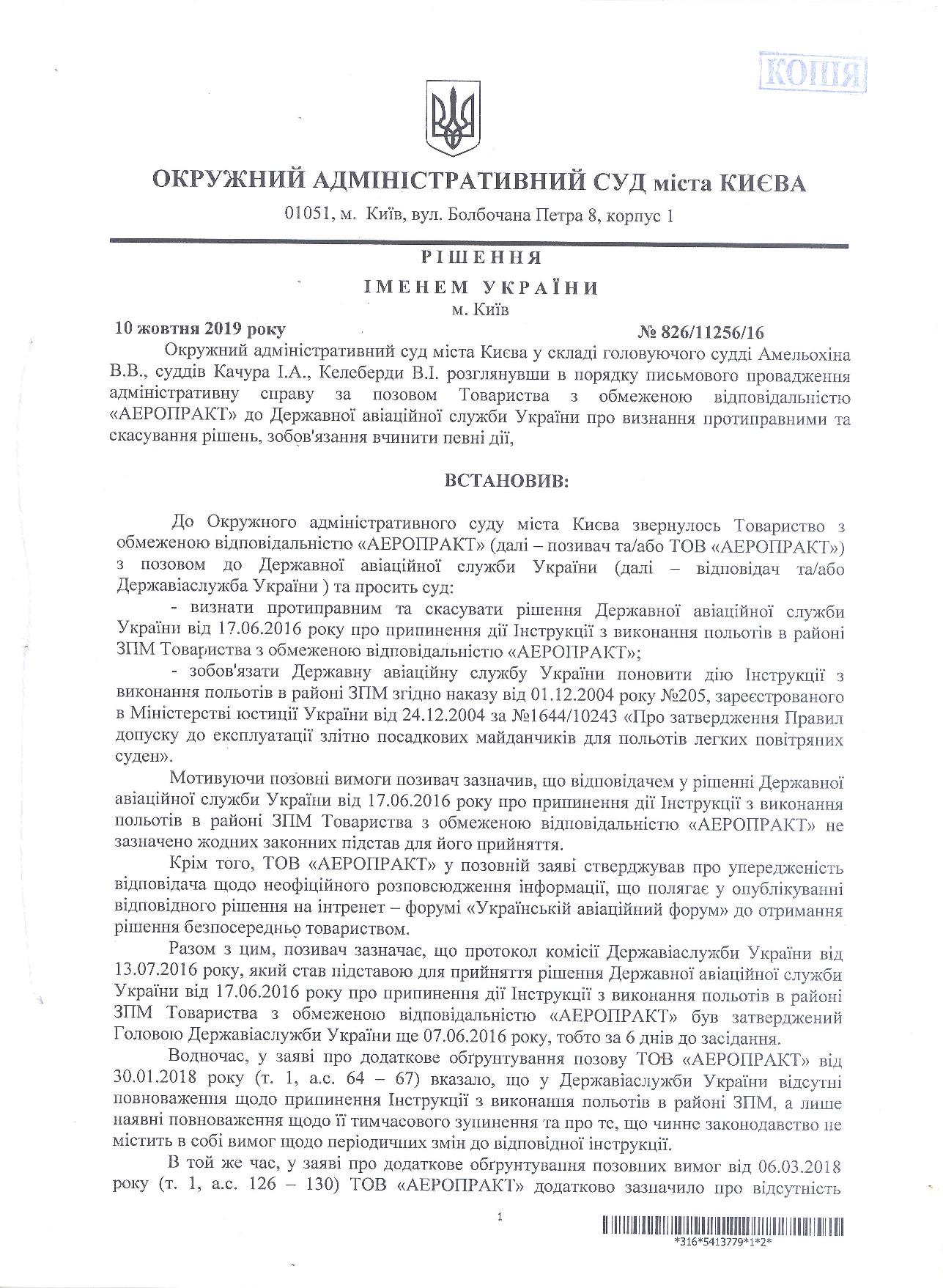 Как некоторые знают, в 2016 году мы обратились в Окружной Административный суд Киева с иском против незаконного решения Державиаслужбы об остановке действия инструкции ЗПМ "Аэроклуб Аэропракт". Суд признал действия Державиалужбы НЕЗАКОННЫМИ.