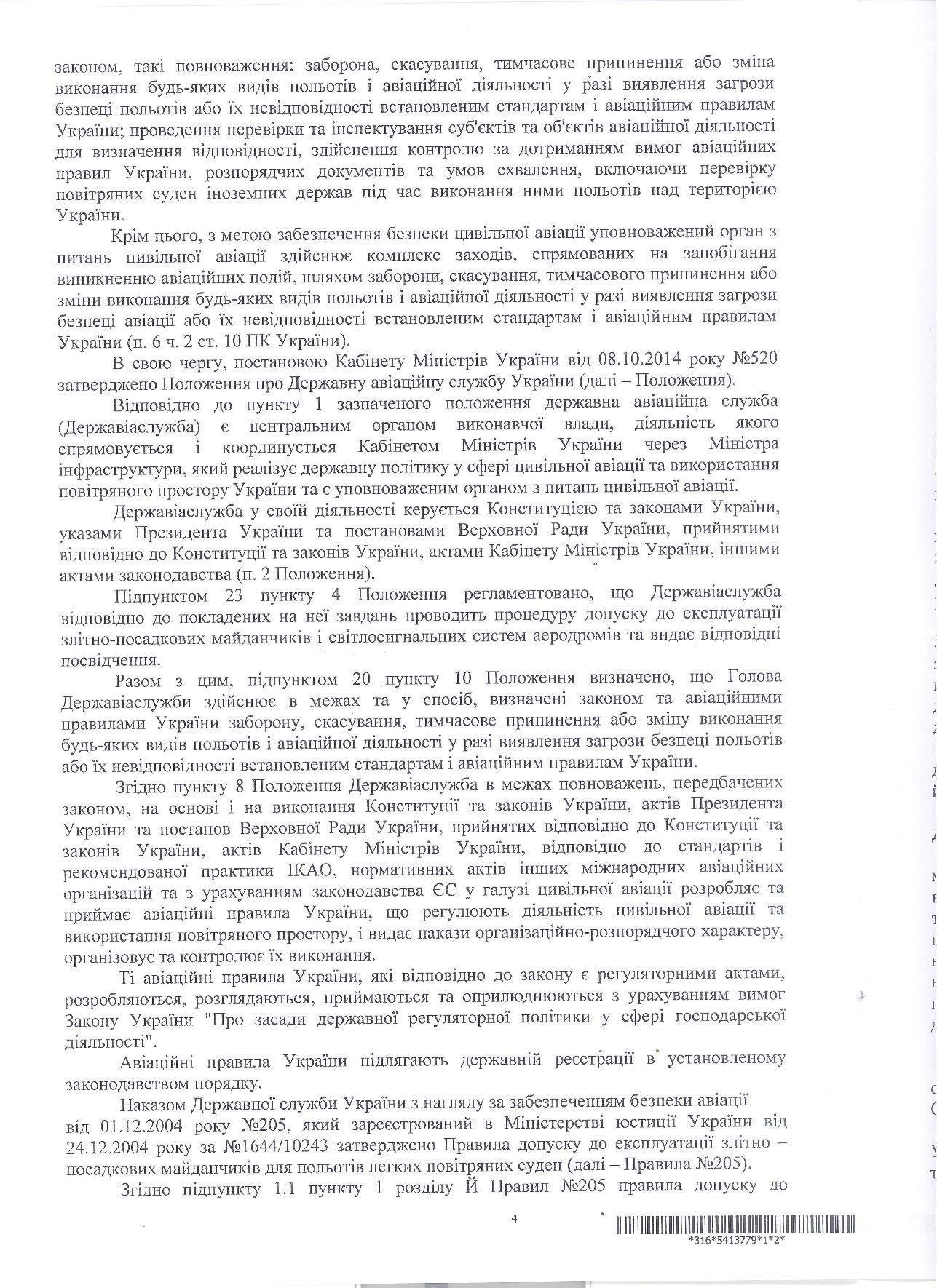 Зокрема, пункт 3. з переліку зауважень, що говорить про відсутність схеми організації зв’язку на злітно-посадковому майданчику, не має відношення до експлуатації постійного ЗПМ, оскільки пункт 4.1.3 Правил авіаційного електрозв’язку в цивільній авіації України, вимагає наявності схеми організації авіаційного повітряного електрозв’язку, який відповідно до визначення даному в пункті 4.1.1. тих же Правил є основним засобом зв'язку органів ОПР з екіпажами ПС. На ЗПМ «Аероклуб Аеропракт» відсутній орган обслуговування повітряного руху (ОПР), таким чином ця вимога Державіаслужби не є законною.