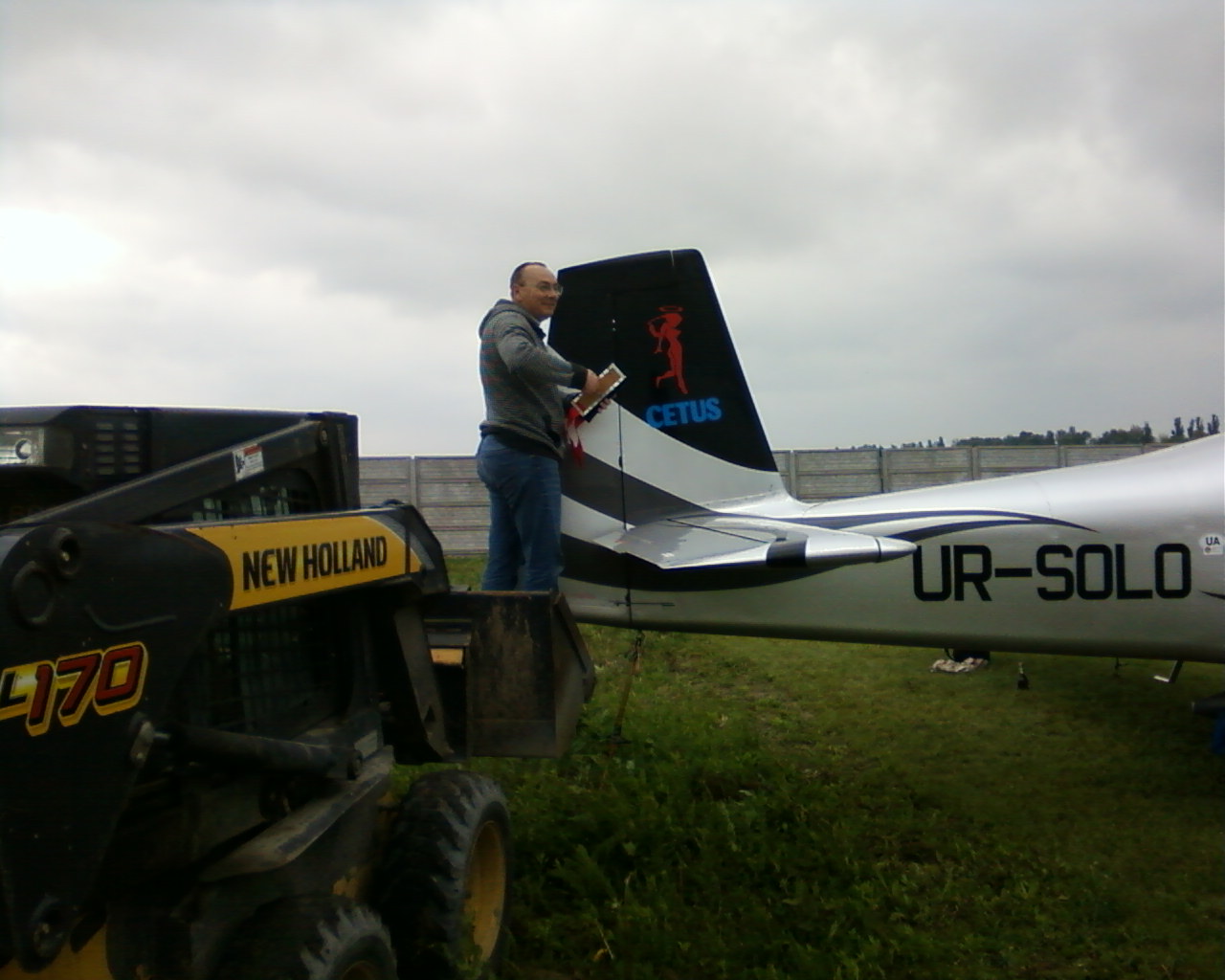 Шевчуку Сергею подали аэродромную лестницу , чтобы закрепить руль