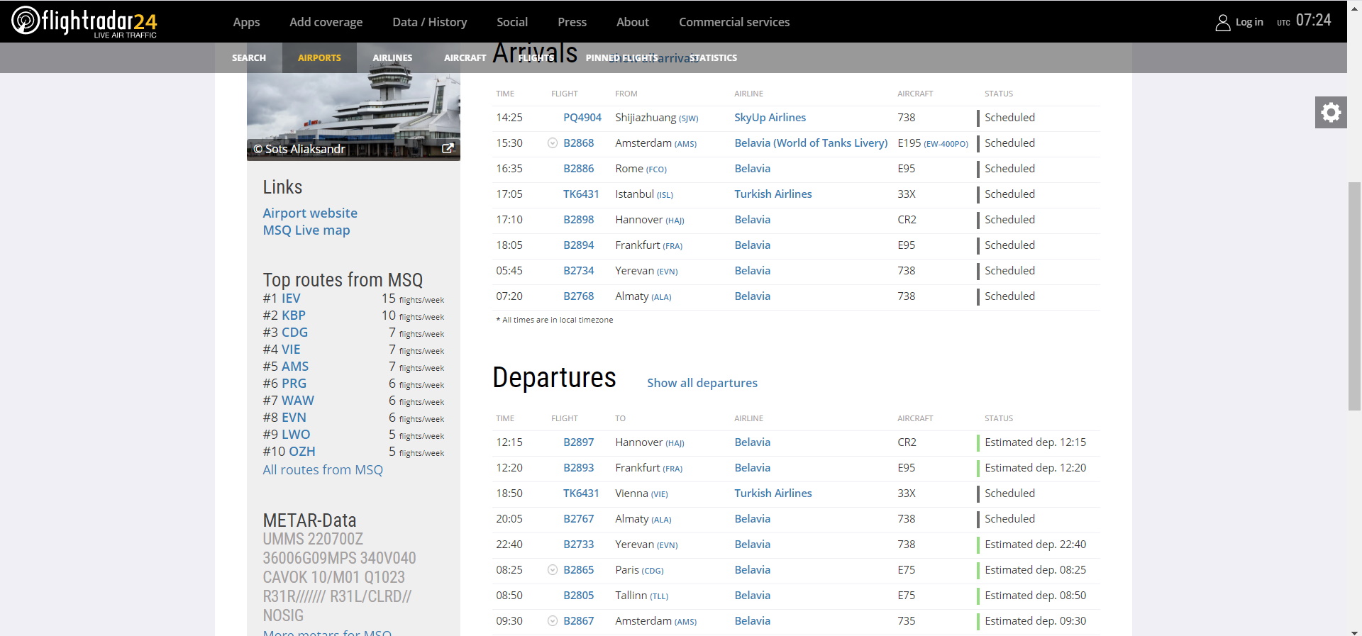 https://1prof.by/news/v-strane/statisti ... 6-avgusta/Также за 2019-й подсчитали количество обслуженных авиарейсов – 28 417: это на 8,9% превысило результаты работы в 2018 году. Так, в декабре минувшего года Национальный аэропорт Минск обслужил 2 253 авиарейса, что превысило результаты работы за аналогичный период 2018-го на 4,6%.