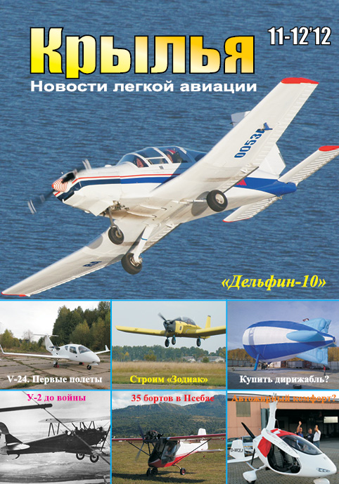 Не забуду про подписку-2013! - это пламенный привет всем, кто не успел подписаться. Все еще можно исправить, все еще можно успеть! Поздравляем с Новым годом всех, кто открыл эти страницы! - а тут предновогодние сюрпризы тем, кто уже подписался. «Дельфин-10» - результаты визита в легендарный с еще сссэровских времен коллектив, итоги испытаний нового учебно-тренировочного самолета Приглашаем в каталог! - да пора бы уже... Народ заждался, авиаторы всего мира, затаив дыхание, ждут-не дождутся выхода очередного издания единственного в своем роде Каталога современной отечественной авиации. Чем там еще удивят эти русские(украинцы, татары, башкиры, беларусы, казахи и пр.)? Не посрамим! V-24. Первые полеты - а вот и наш "ответ Чемберлену" - первая "Ласточка", новейший двухмоторник. Производители автожиров борются за комфорт в полете - и пусть бы себе боролись и дальше - нам то что, но мы теперь не отрываемся от мировой общественности, и то, что модно там, неизбежно через пару лет становится модным и у нас. Кстати, эту пару лет можно вполне продуктивно использовать, хорошенько изучив их промахи. Российские вертолетчики - чемпионы мира! - Это просто невероятно! Душили-душили... Уже и вертолетостроения почти нет, уже спортивных вечность как не выпускают, казалось бы - сложите лапки и не дергайтесь - ан нет! Класс таки берет свое, и таланты - их не скроешь... Браво! Новая литература - А вы думали - уже и нет ее? Как бы не так! Талантами земля русская никогда не скудела! Получайте! Тут вам и техническая, тут вам и художественная, тут вам и про столь любимые теперь всеми автожиры. «Петух» учится летать - па-а-апрашу без ненужных ассоциаций! Ну любят итальянцы эту многозначительную птицу... Вот и сделали сомолдет на него похожим. У нас тоже был самолет, расписанный под хохлому. Теплый старт в холодное время или сколько стоит комфорт для двигателя - весьма актуальная сегодня информация. И совершенно не с целью рекламы, а исключительно пользы для. Обучение в Италии. Обслуживание канадского двигателя PT-6C-67C - это на случай, если и вы соберетесь туда подучиться. А что - вот такая нынче наша молодежь! Не все ж "анвторым" хвосты крутить... Новости. новости. новости - а вдруг забыли чего? Так мы напомним про самое важное. Подписка. Цены. Реквизиты - это как раз то, чего забывать нельзя. А иначе как нас читать дальше? ТОРГОВАЯ ПЛОЩАДКА. Страницы частных объявлений - не прошло и четырех лет, как многие оценили, наконец, право подписчиков размещать бесплатно свои объявления. А иначе за что платить свои кровные? Присылайте еще - бумаги на всех хватит! Предисловие к полету: полет по кругу и маневрирование - это подарок вам от ставропольских авиаторов, они делятся своими новейшими наработками в плане обучения. Строим «Зодиак» - как же долго я мечтал раскрутить этот коллектив на откровения! И - дождался. Не скрою: это просто чудодейственный бальзам на раны любого самолетостроителя. Скрупулезное и одновременно талантливейшее описание всего объема работ, проделанного авиаторами из Ахтырки, построившими и испытавшими свои версии "Зодиака". Особенно приятно отметить профессионализм высшей пробы. Эх, если бы все так! Как легко было бы ориентироваться во всей нашей технической информации! Закрытие сезона в Псебае - любят местные авиаторы полетать и отдохнуть одновременно. Уже 35 бортов набралось - и все летают