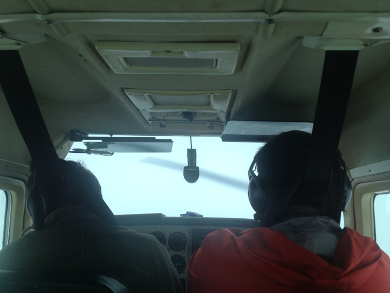 Из Ватулино в Грызлово летели на председательской Цессне. Тут все было привычно. Но тоже не расслабишься. Погода дрянь, за окном облака. А тут еще пилоты повесились. На фото ниже хорошо видно.