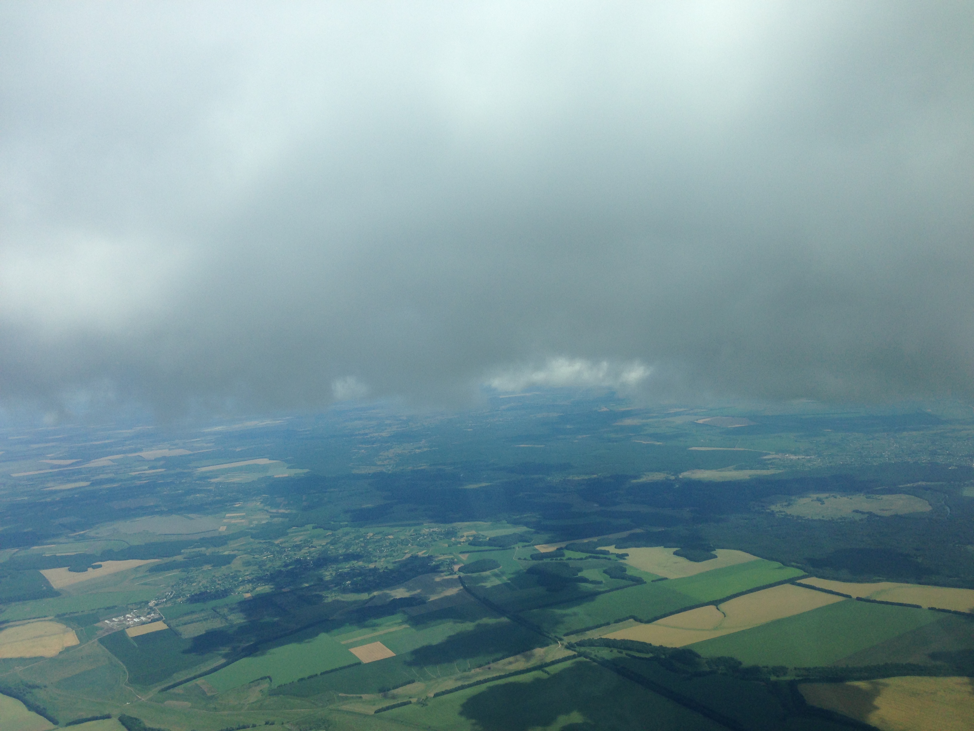В общем если не будет цветовой диференциации штанов - наше общество загнется... По пути в Харьков встретили немножко дождевых облаков, прошли их по нижнему краю. Ниже немного фотографий. При посадке нас предупредили о сдвиге ветра, о боковом ветре 90 градусов по отношению к полосе и порывах до 17м/с. Но не возвращаться же в Киев... Зашли... Сели... Поборолся немного с ветром на посадке... Но посадил мягко даже сам приятно удивился, при такой то погоде... Потом сказали в аэропорту, что DA42 не вылетал, ждал чтоб ветер стих. Но видимо мы своей посадкой его успокоили и он улетел в Одессу. Потом была чудная беседа с Агиевичем и Богачем, а также прекрасной половиной Алексея. Спасибо Вам харьковчане, за приятное время, обед и душевную беседу. Вечером по дороге обратно снова встретились с Гарантом, из-за чего нас минут на 10 отправили делать крюк в районе Триполья. Кстати, главная новость: теперь в Харькове официально действуют тарифы базового сбора для самолетов весом менее 2 тонн не 370 а 10 у.е. Надо бы Одессу еще в этом плане победить...