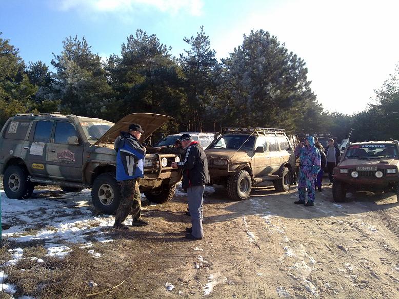 С помощью этих устройств мы без особого труда отыскали на заснеженных просторах степного Крыма точку сбора и первая встреча состоялась. Во время короткого брифинга узнаю, что это никакие не соревнования, а автопробег (по нашему не слет, а перелет). Что собственно две большущие разницы. ОБАНА….