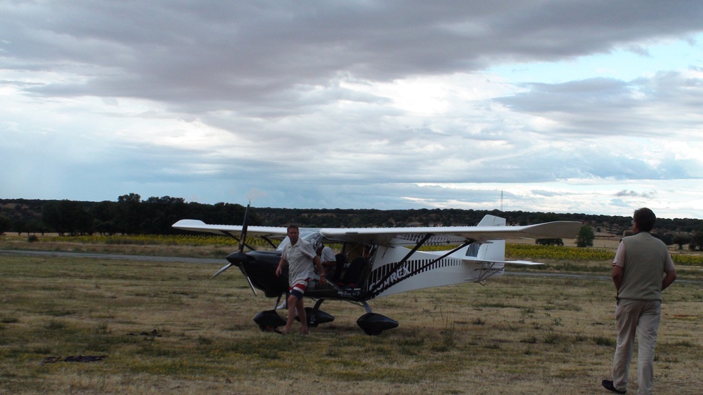 В этот раз поддержку на месте нам оказывал представитель Аэропракта в Испании Андрей Ливенцев. Это киевлянин, переехавший 10-ть лет назад в Испанию и помогший нам там продать 70-т А-22. В прошлом он пилот МиГ-21, сейчас летает на мотодельтах и свехлегких самолетах. Андрей сделал очень много для нас: арендовал дом, помог заплатить взнос за участие, помогал в общении с испанцами (не многие говорят на английском), выполнял функции механика, привез все необходимое в виде инструмента, палатки и т.д. В общем без него было бы трудно. 2-го августа мы добрались до дома, где нас уже ждали Андрей и его жена Даша. Поужинав в ближайшем баре вернулись домой и хорошо выспались. На следующий день довезли самолет до аэродрома, решили с организаторами где ставить самолет и начали его собирать.
