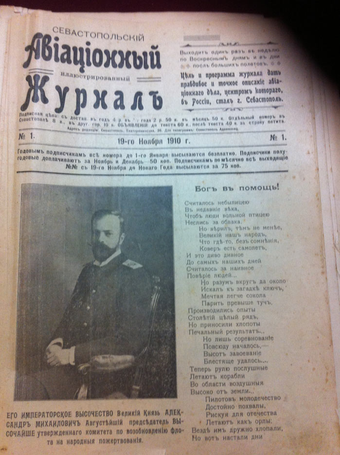 19 ноября 1910 года выходит первый номер Севастопольского Авиационного журнала.