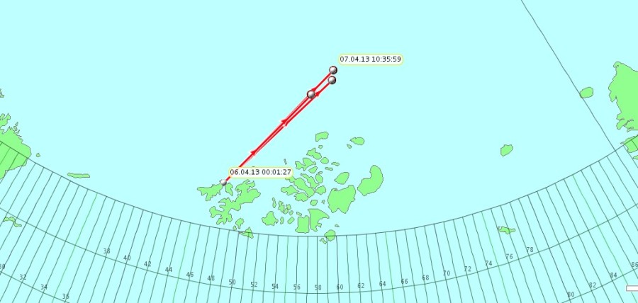 Взлет Нагурское 05:29 UTC. Маршрут: Нагурское - N 90°00.000' - Барнео - Нагурское.