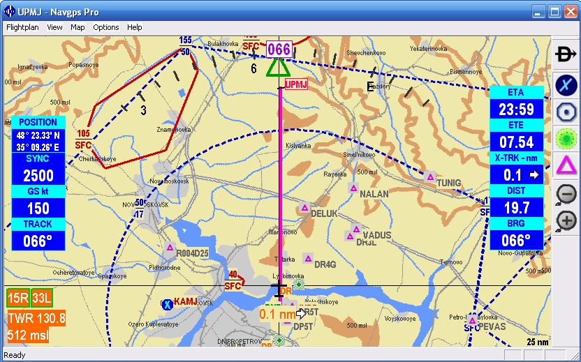 Де-факто, программа NavGPS с базовыми картами Евразии и предлагаемой базой данных, установленная на PNA с ОС WinCE 5.0, является наиболее доступным резервным средством навигации, имеющим все необходимые функции авиационного навигатора.