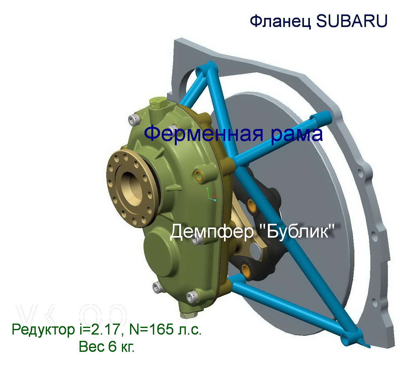 Михаил пересчитал центровку по результатам разработанной конструкции и оказалось, что как раз вписывается двигатель весом 120 кг. Поэтому остановились на двигателе Субару EJ 25 в атмосферном варианте с редуктором. Оринтировочная мощность 170лс взлетный режим и 140 лс в крейсере. При 140лс по расчетам должен лететь 300км. Михаила расчет сделан с запасом. Отдельный расчет провели специалисты из з-да Антонова. По ихним расчетам при 140 лс скорость должна быть 350км,ч.