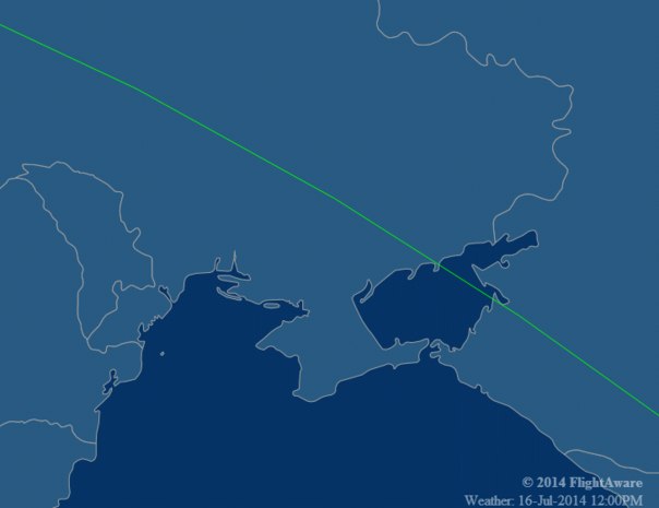 Согласно сайту FlightAware, нормальный маршрут рейса MH 17 Амстердам - Куала Лумпур в районе Черного моря был очень стабильным: он пересекал украинский берег Азовского моря около Бердянска, к юго-западу от Мариуполя, изо дня в день с точностью до десятка километров.