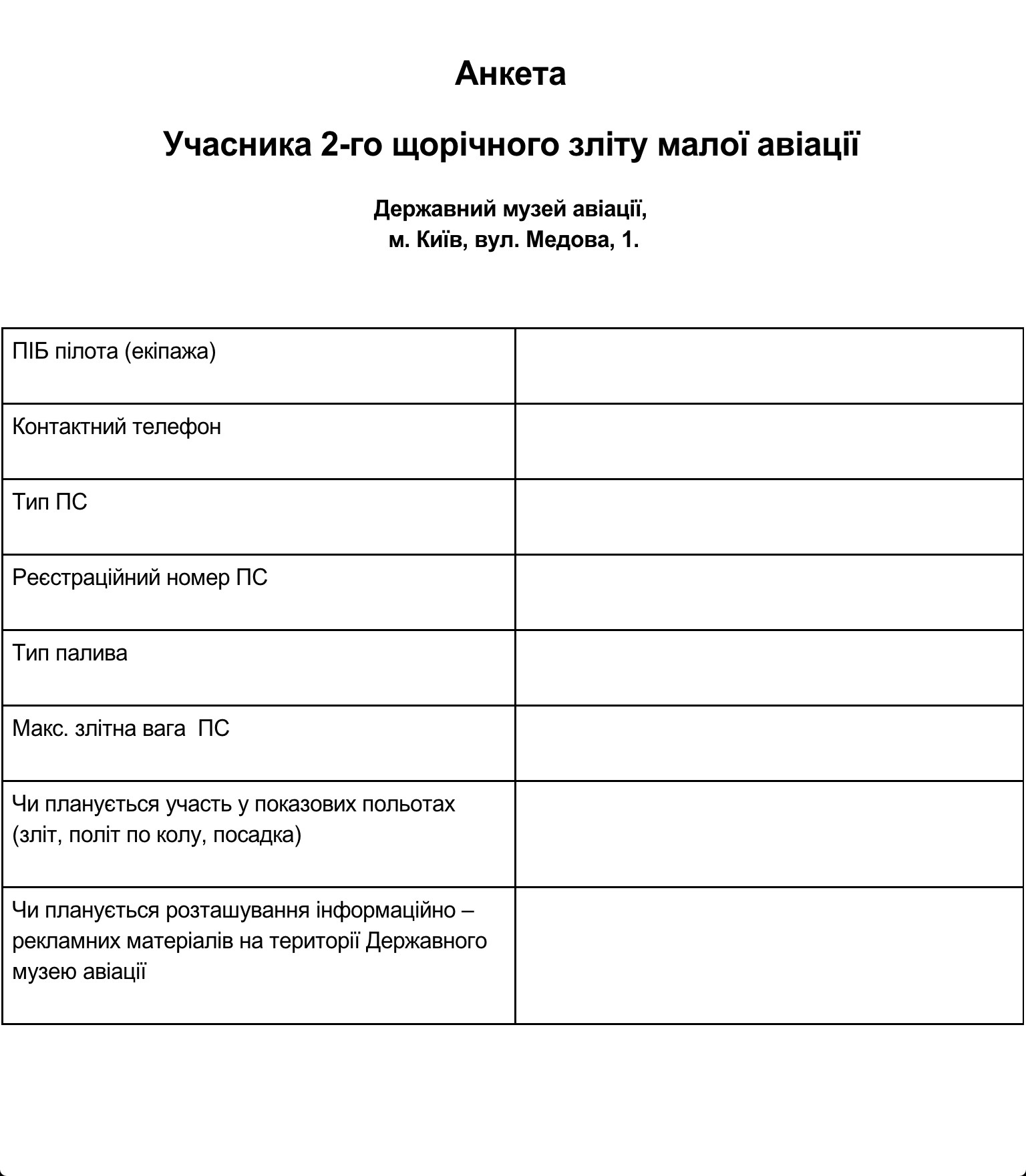 Для підтвердження своєї участі необхідно заповнити анкету та надіслати її на електронну адресу alexrykov1@gmail.com