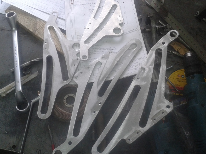 Так же забрали кучу деталей ( передняя стойка , штуцеры и горловины бензобаков, поршня на гидроцилиндры и амортизаторы и др. ) с анодирования и оцинковки ( по моему ? )