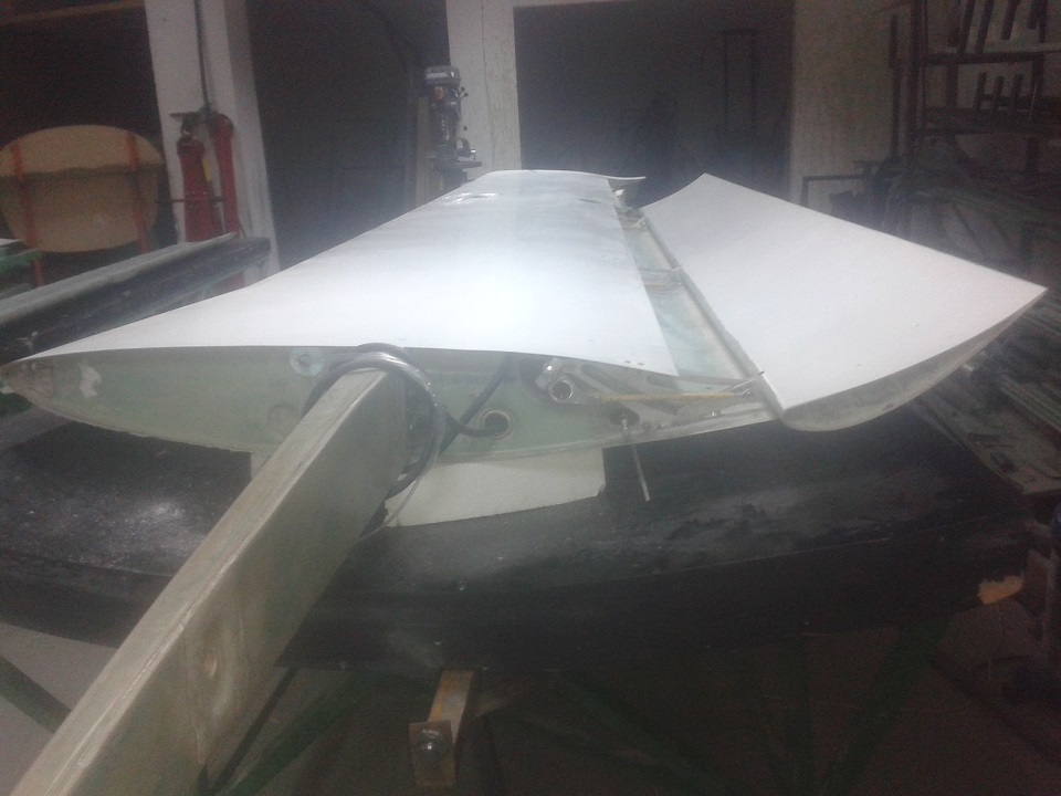 Два месяца назад мы начали клеить лонжерон и обшивки крыла. Сделали кучу примерок и нашли кучу ошибок. :fool: И только сегодня прошел первый этап сборки. Самое интересное обнаружилось в 16.00, когда начали мешать смолу, что в бочке ее осталось 800 гр. :shock: