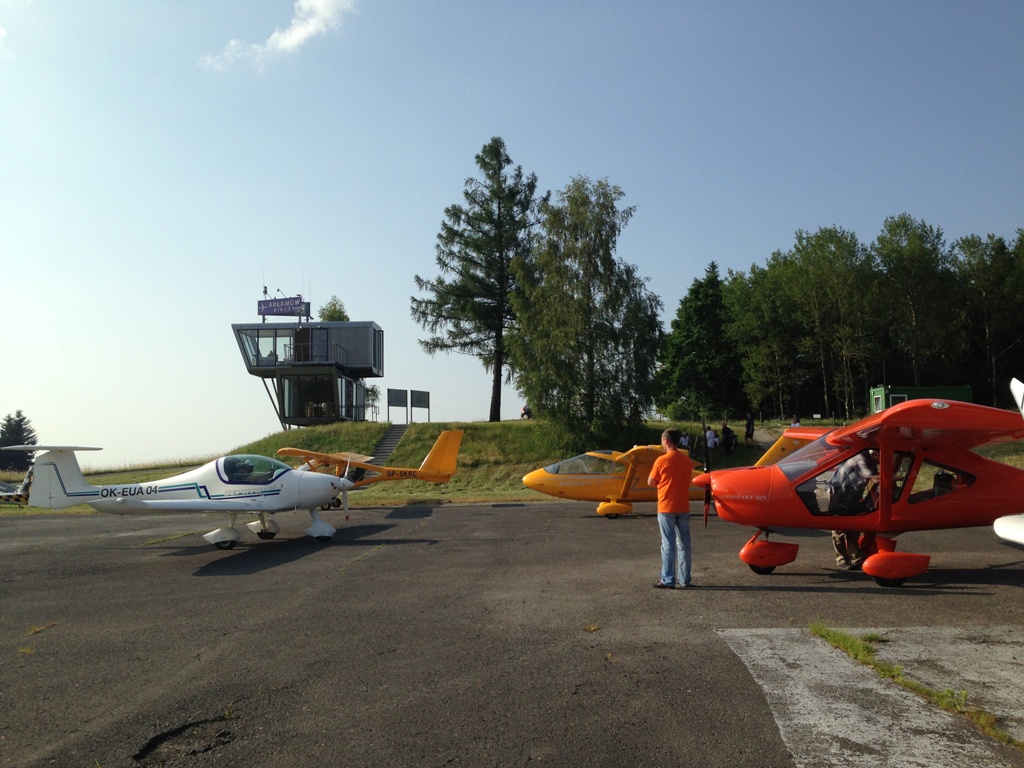 На аэродроме ни кто не базируется - нет ни одного ангара, но есть небольшая асфальтовая площадка для стоянки и на ней заправка. Но что нас удивило, так это футуристическое здание аэродрома. Просто космический корабль! :good: В здании есть все необходимое: маленький зал со столом и стульями вокруг, миниатюрная кухня и полноценный санузел с душем, сверху комната отдыха с кроватью и диспетчерский пункт с балконом. Там нас встретил человек по имени Венцлав, который оказался бывшим военным пилотом, летавшим на МиГ-21, а ныне летающий на ультралайтах инструктором. Он позвонил куда надо, что бы закрыть наш флайтплан.