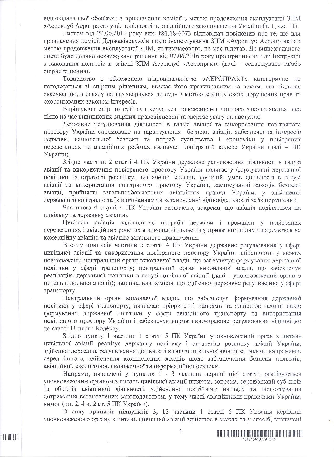 Зокрема, пункт 3. з переліку зауважень, що говорить про відсутність схеми організації зв’язку на злітно-посадковому майданчику, не має відношення до експлуатації постійного ЗПМ, оскільки пункт 4.1.3 Правил авіаційного електрозв’язку в цивільній авіації України, вимагає наявності схеми організації авіаційного повітряного електрозв’язку, який відповідно до визначення даному в пункті 4.1.1. тих же Правил є основним засобом зв'язку органів ОПР з екіпажами ПС. На ЗПМ «Аероклуб Аеропракт» відсутній орган обслуговування повітряного руху (ОПР), таким чином ця вимога Державіаслужби не є законною.