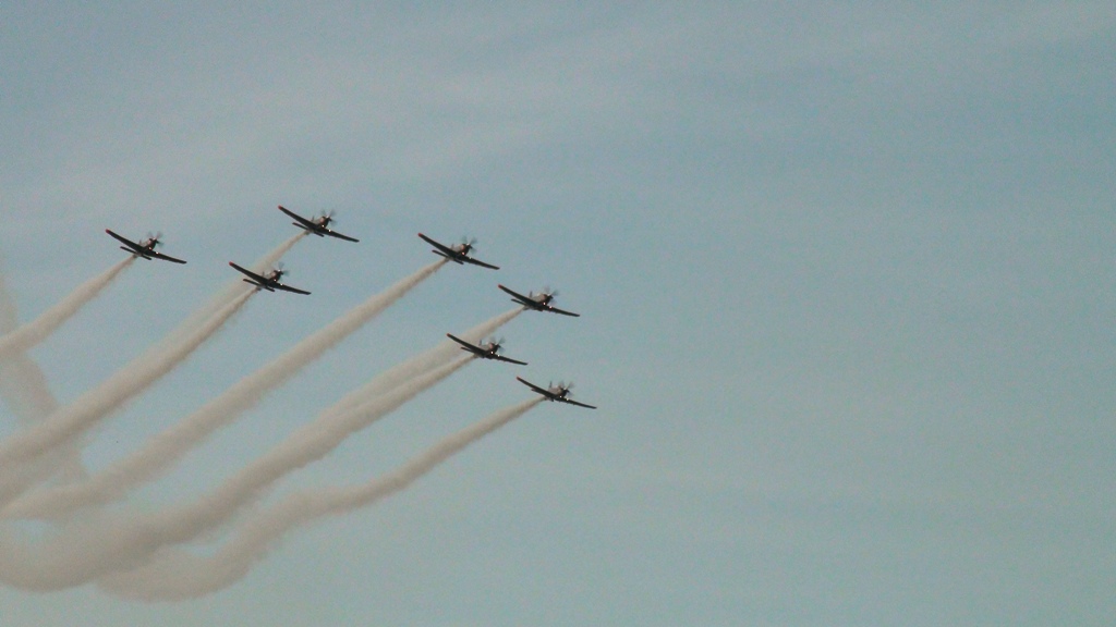 После выступления тройки самолетов Экстра пилотажной группы Желязный, в небе появилась пилотажная группа ВВС Польши на турбовинтовых самолетах Орлик польской конструкции. Это, безусловно, был "Гвоздь программы" 8)
