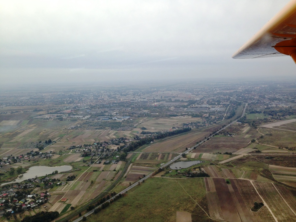 Подлетев к точке TOLPA на границе, доложились Варшава Информации и попрощались с ними. Попытались связаться с Львов Информацией, но Родина нас встретила молчанием :), контрольно-следовой полосой, большими полями и большими очередями на переходе Ягодин. Львов Информация стала нас звать, когда мы пролетели километров 70-т после пересечения границы. Мы пытались отвечать, но ни какой из наших бортов они не слышали.Тогда я им просто позвонил по телефону и доложился, что у нас все в порядке. Подлетая к Луцку, опять же по телефону, связался с Львов Информация и удостоверился, что военный аэродром не работает. Погода по пути улучшилась до CAVOK, но дул сильный встречный ветер и продолжал отнимать около 60 км/ч, к тому же болтало не по детски. :%) Некоторые из нашей группы спускались ниже и радостно сообщали, что ветер там потише, но я спустившись ниже, этого не почувствовал, зато трясти стало еще сильнее. :crazy: Возвратился на прежнюю высоту. Луцк облетели севернее.
