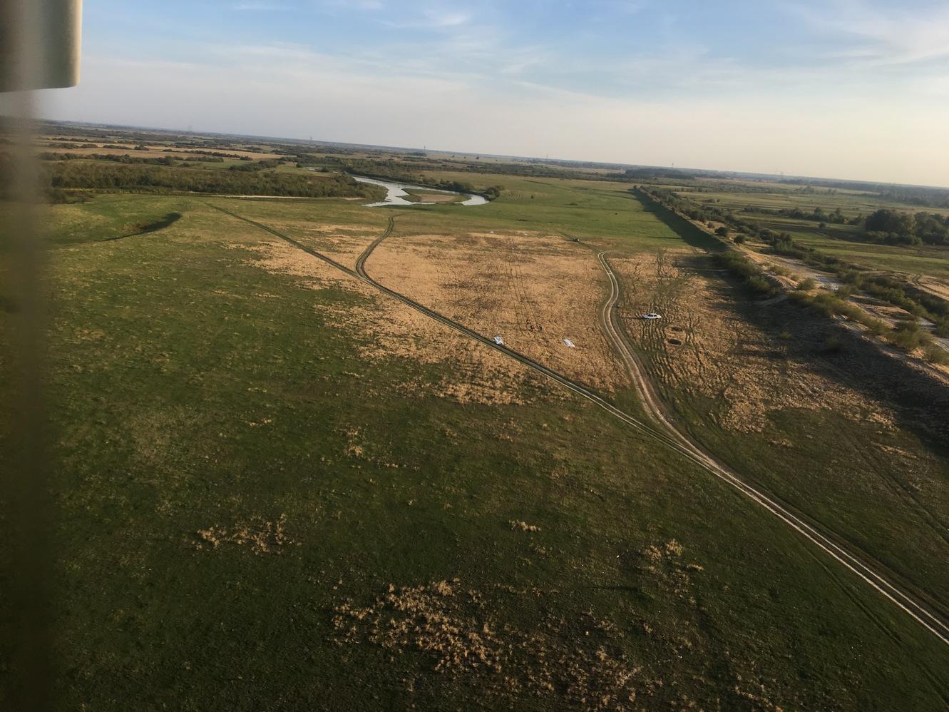 Можна прилетіти на "домашню" площадку Стаса, за 1200метрів від їхнього будинку. Фото внизу. Довжина 250метрів. Грунт твердий, рослинність не висока, пасовище. Шасі "Тундра" не обов,язково. Точність приземлення треба. Координати 5119N02638E З 09-00 будуть посадкові знаки курс 165/345, як на фото та допомога по "радіо" на 12345 Також бензин ОККО 95