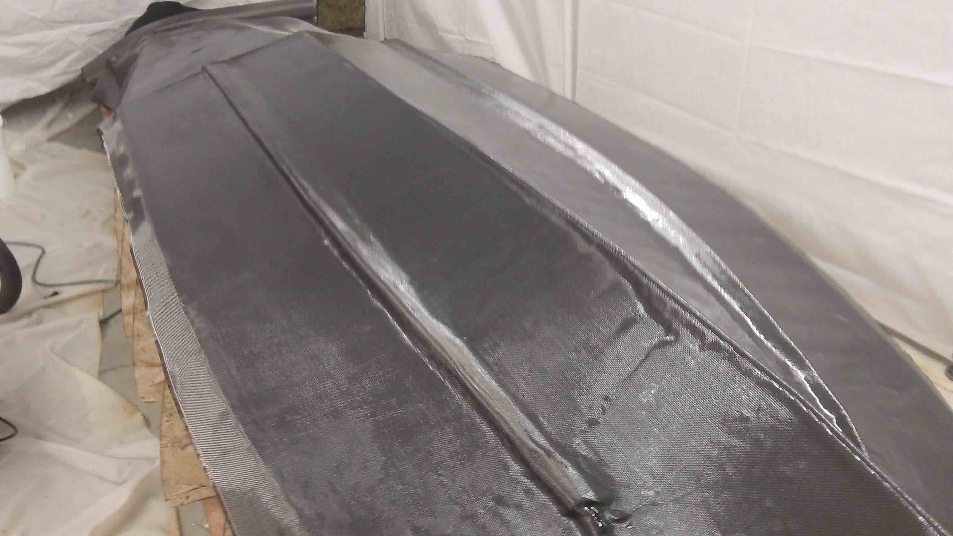 Пока смола не затвердела надо успеть прокатать и карбоновый лист или точнее ролл