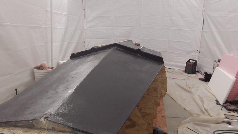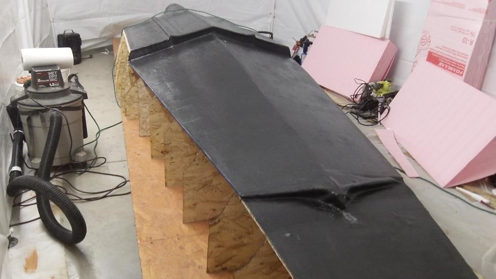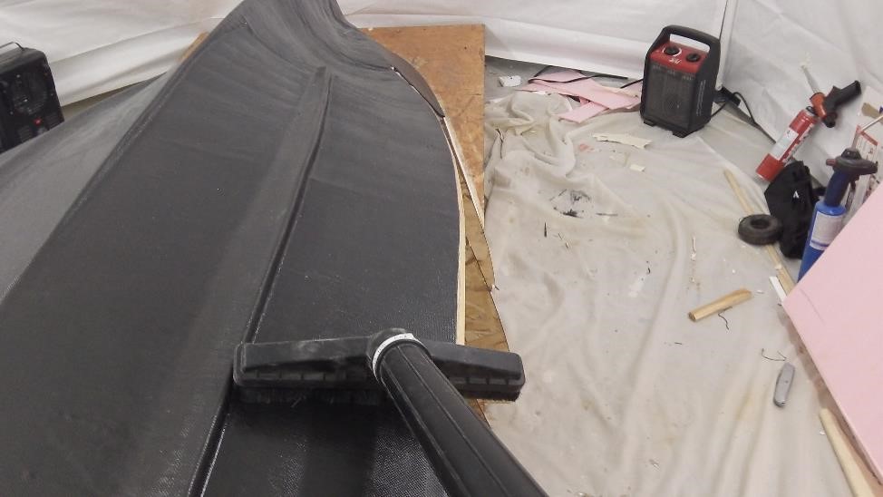 Думаю что одной из "грубейших" ошибок нам Уважаемый S.Ryzhyy имел ввиду то что мы раскатали ткань по оси а не по 45 град к оси как завещал Великий Рутан. это в нашем случае не ошибка - а всего лишь метод нашего подхода к данному этапу. Мы делаем "заготовку" под дно. это "Полик" лодки а не сама лодка. Мы "закатываем" безматричный вариант и это несколько более быстрый хоть и не совсем "кошерный" метод ламинирования корпусов.