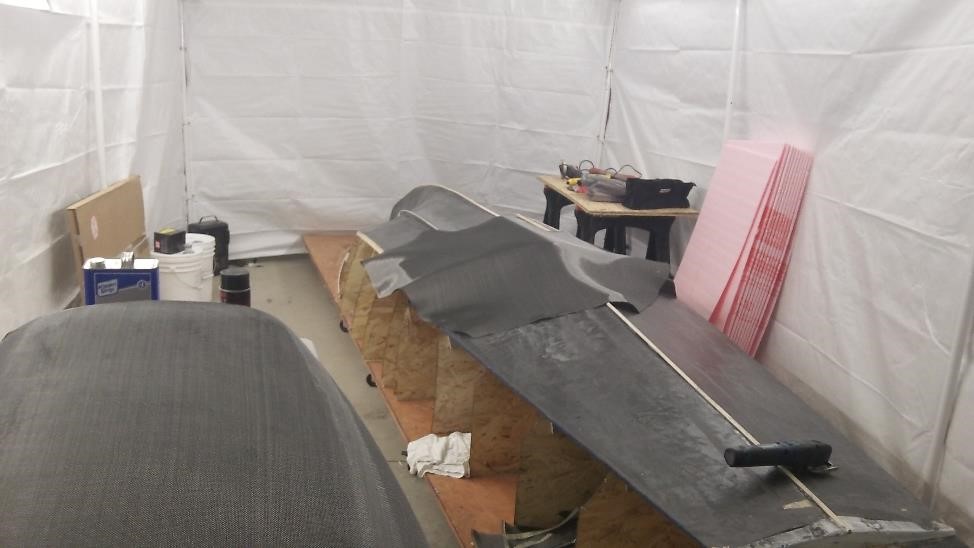 Теперь расскажу зачем я все это раскраивал и нарезал. У нас после (скажем так) контрольного феншуя образовались определенные сомнения. И в общем и в целом хвост и нос нашего будущего корабля ну не совсем подпадал под красоту и надежность всех наших личных требований. То есть например хвост оказался чуточку завышен а нос чуточку заостренным. То есть костюмчика как бы это сказать - вроде бы и на костюмчик похож ... но вот воротничок узковат и лацкан не достаточно широк. В общем не по моде. А с хвостом так вообще нескладушка получилась. Ну да ладно - щас покажу что мы сделали. Итак Начнем с носа. Если вы помните у меня в ангаре стоит мой Зодиак. И к нему мерзнет двигатель Вайкинг. Капот крышка этого двигателя сделанная из стеклоткани по расчетам укрытия хондоконверсии в общем и в целом произвели на нас очень положительное впечатление в плане использования как манекена для нашего нового носика И вот что мы сделали