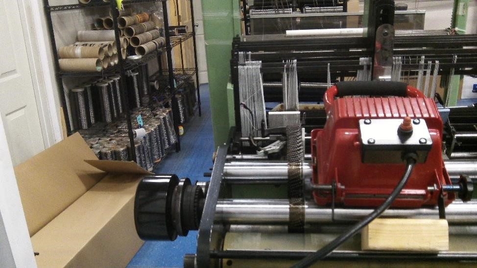 Ну в общем стоят себе ткацкие станоички из прошлого уже века и к ним на катушках подлючены нити-карбоновые волокна которые тут же разпределяются между сотнями катушек на равную длину толщину конфигурацию