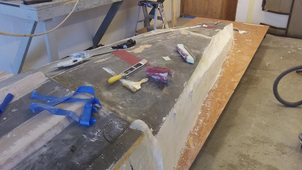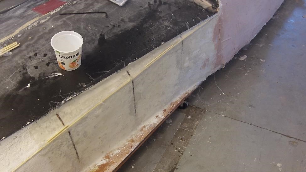С лодкой на сегодняшний ень очень много мороки. Мы заделали ее "борта" с помощью пеноструя который не так хорошо режится как хотелось бы. теперь настало время шпаклевать, но: ВНИМАНИЕ обратите внимание как агрессивно сработала БОНДО шпаклевка на наш борт. Не совсем понятно как и почему именно в этом месте произошла коррозия, надо будет поиграться с деталями этого момента .