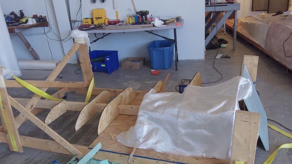 Наш мальчонка Данила Мастер задал мне сегодня потрясающий вопрос: " А кто еще делает и где что либо подобное?" Я не нашелся что ответить. Никто (насколько мне известно) не делает КИТ-амфибию Кроме Progressive Aerodyne Searey (нет не так: есть еще КИТ Osprey II - деревянный и Gweduk -композитная версия GRamman). Никто не делает из карбона способный сертификацию пройти LSA . То есть у нас вроде бы и конкуренции то и нет. Ну да ладно об этом пока еще рановато думать. Вернемся к конструкциям. Поддержал я таки борта сегодня с помощью эпоксидки Завтра буду Бондо наносить Ну и кое что сдвинул с места на полях кабинки Красивая должна получиться у нас кабинка надо Вам сказать