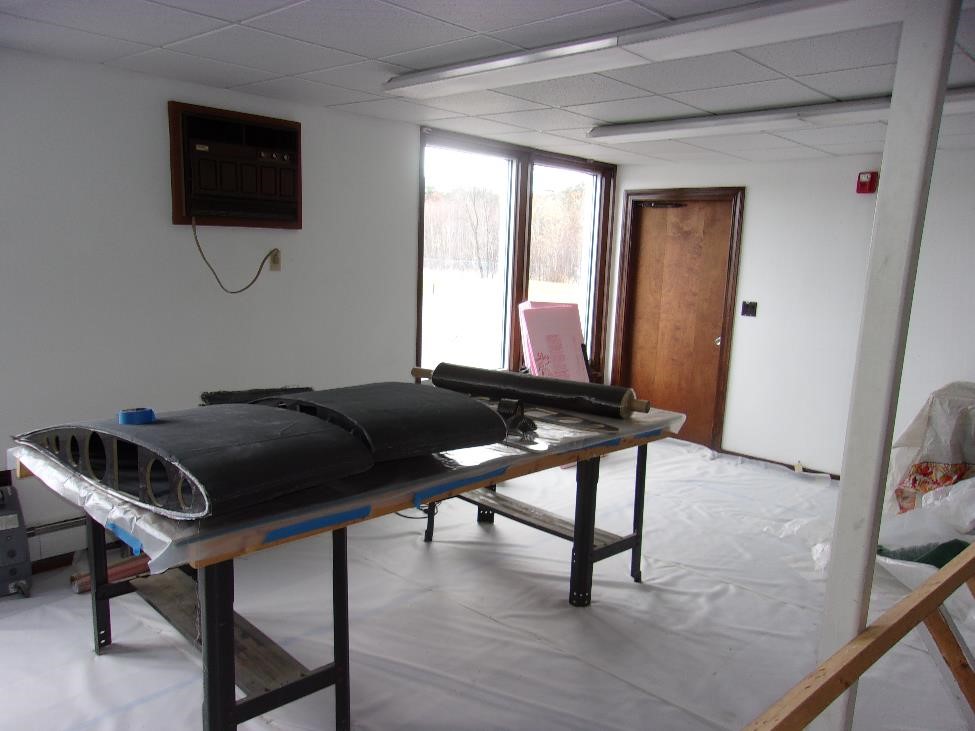 Это ограниченное стенками и потолком помещение которое летом было оборудовано под учебные классы. Ввиду того что особенно пока мы вести обучительный процесс будем из этой самой лаборатории - и отапливать ее легче намного - навезли все сюда. Перевезли столы, обезопасили полы несколькими слоями отдирашки с полиэтиленом, подвели музыку освещение и подготовили все к производствы композитных дел Как раз надо было вынимать очередную порцию обшивки из вакуумного мешка и показывать что же там у нас получилось