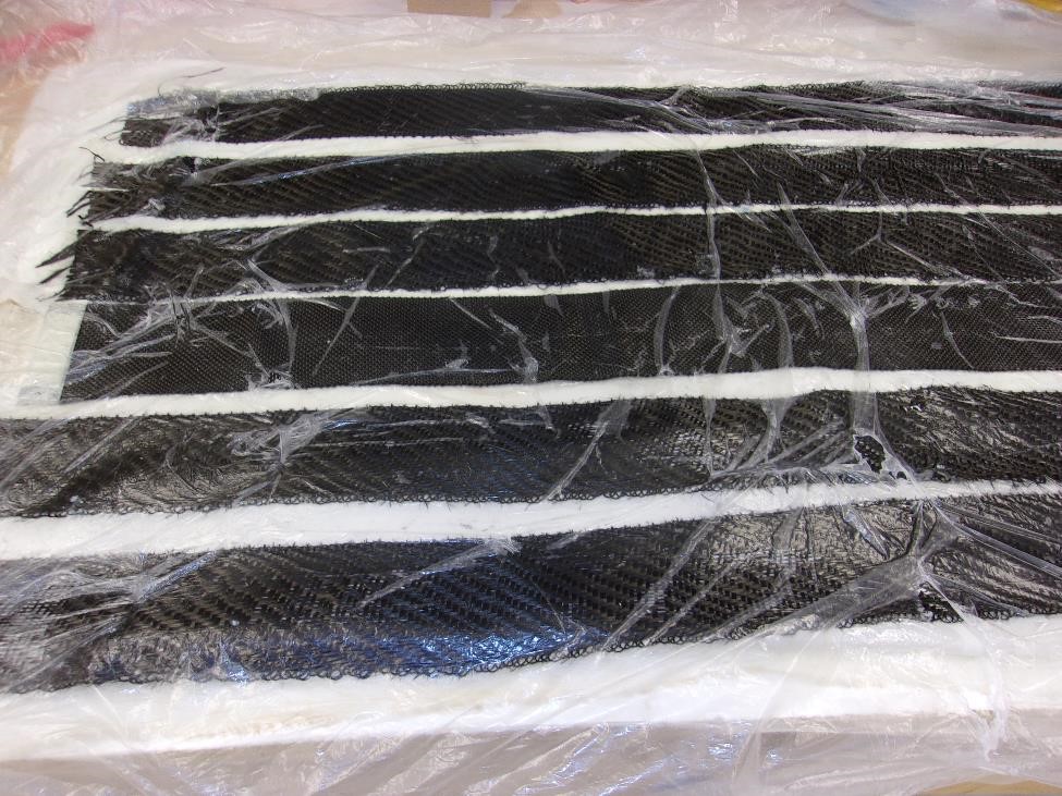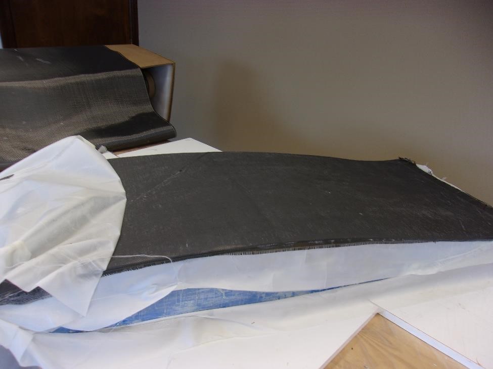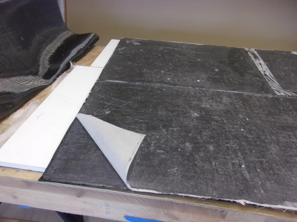 Все это надо было разобрать и приготовить для сборки в коробочку Обратите внимание на отдирашку которую я с немалым трудом отодрал от карбонового сандвича - Я ее заснял с двух сторон: Одна сторона матовая и именно эта сторона была "приклеена" к сандвичу а другая сторона как бы глянцевая - это наружу выжаты вакуумом все излишки смолы