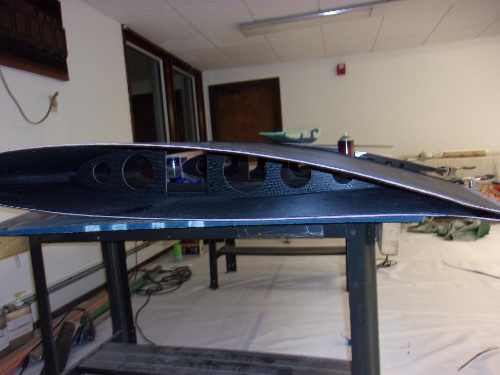 Что и зачем я делал . Сначала подравнял свои обшивки простыми ножницами по металлу. Режет композит весьма аккуратно без проблем. Надо будет еще торцы зачистить а так вполне ОК. Потом уложил вовнутрь ленту понимая что в реальном случае все это будет формоваться одновременно. Лента будет приформована к обшивке с канатиками для последующей установки ребра. Одного а не двух. Канатики с одной стороны будут выполнять роль ребрышек жесткости а с другой стороны будут являться ограничителями установки нервюры
