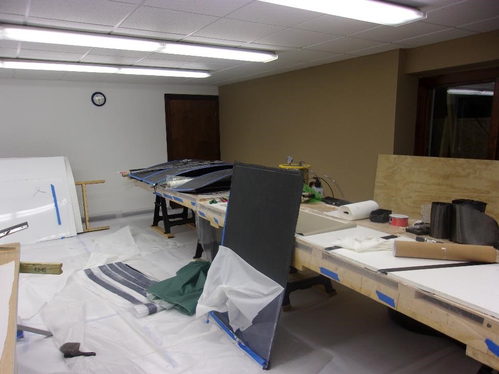 Прежде чем пойти помыть руки , голову, нос итд и лечь спать хочу поделиться проделамнной за сегодня работой. Для начала я снял с вакуумного стола две панельки которые заложил накануне. Покажу очень подробно процесс де-ламинизации. Итак если мои многоуважаемые интернетосмотрители помнят мы заложили в ствол вакуумного стола две панельки Каждая размером в 32" х 48 ". После того как разгребли снег и в ангар стало просто заезжать - я выключил насос на столе, подал воздух под крышку , снял обе панельки с поверхности стола и внес в теплую лабораторию. Покажу отдирание первой. Итак сначала снял верхний слой полиэтилена. Роль полиэтилена в этом случае играла использованная прошлый раз отдирашка. Она на себя тоже приняла часть смолы и ее опять пришлось отдирать. Потом был слой "живой" отдирашки. И вы видите как различается "пользованная" от нецелованной ни разу. Когда добрался до карбона , поддел всю панель за нижний слой отдирашки и разделил ее от Плексигласа. Нижний слой отдирашки врезультате такой операции стал глянцевым. А вот под ним получился просто замечательный гладенький ровненький сандвич. Такая панель "на базаре" стОит в розницу под $1000 . Мне она нужна как я уже говорил для изготовления различных шпангоутов и рёбер - что пока самая насущная задача.