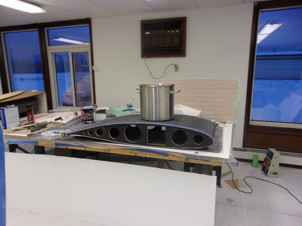 Замазка эта конечно правильно пахнет, и когда твердеет - становится железобетонная. Но долго там с ней находиться невозможно - дышать совершенно нечем. В общем решил производство всего болванчика завершить поутру. Но все необхосимые замеры и выкройки уже селаны