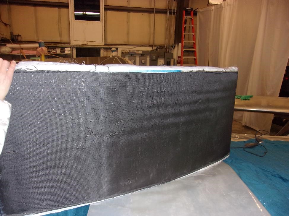 Например вот она свеже снятая обшивка сделанная по "новой" технологии . В чем разница - нам удалось таки сделать очень ровный "загиб" бутербродного пенопласта вокруг болванки. Ларчик оказывается открывалса преельно просто: достаточно было перед "запечатыванием" всего сандвича в мешок просто собрать все и запечатать скочем