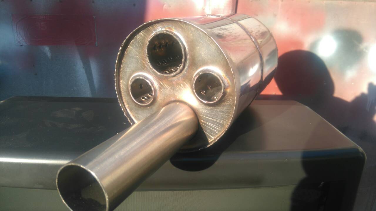 Может я чего то не досмотрел, но вроде как, между входной и выходной трубой, нет перегородок. Чертёжик с направлениями потоков выхлопных газов, выложите?