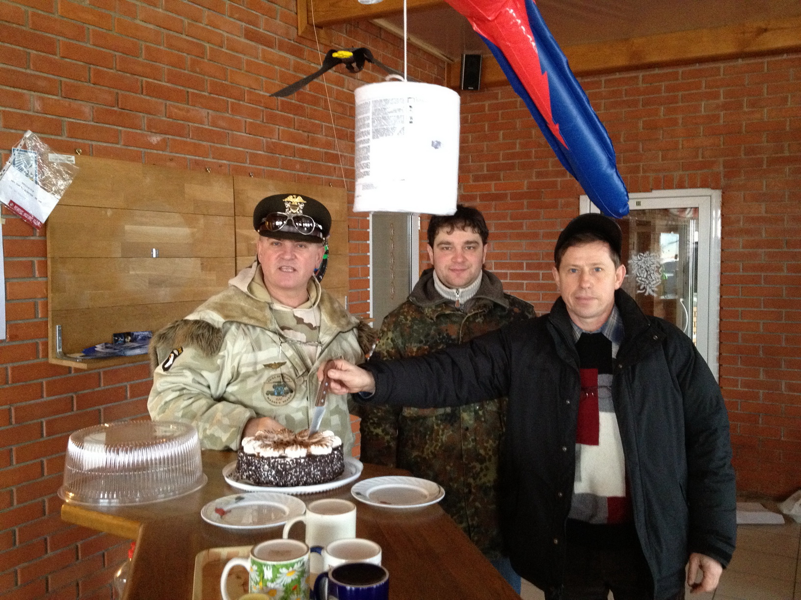 Как и планировалось с утра посетил уютное кафе где пахло кофе ,и всякими сладостями ,после консультации приятной девушки кондитера ,было выбрана максимально вкусные кондитерские изделия . И я с добрыми пожеланиями, после покупки отправился на аэродром ,где меня ждал экипаж Семенова чтобы парой улететь на Налевайковку на плонируемый Рождественский чай . А в это время с аэродрома Козелец вылетела пара тряпколетов ,под управлением Хмары , с Белой Цэркви стартовал РВ 10 , погода была просто песня ,от взлета до посадки . После чаепития в Налевайковке ,было принято решение лететь в Житомир на гриль сосиски , и шестью бортами мы это исполнили .Еще один день провели в красивых полетах ,и дружеском общени всем участникам спасибо.