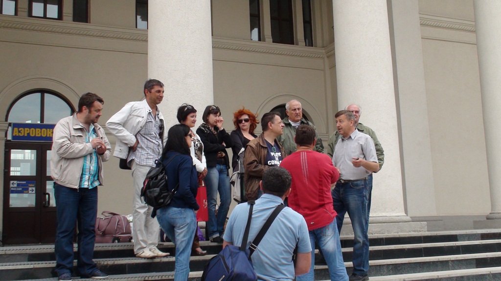 В 10.20 по Киеву, с интервалом несколько минут, в заранее оговоренном порядке, взлетели в Гостомель, где все приземлились до 10.50. Зарулили на стоянку и начали процедуры прохождения авиационной безопасности, пограничников и таможенников. Необходимо было заполнить генеральную декларацию и обязательство об обратном ввозе ВС. Все процедуры заняли 2.5 часа из которых большая часть ушла на ожидание специалиста по борьбе с контрабандой, который приезжает из Киева по вызову таможенников. Вылет пришлось перенести на 1.5 часа. Прямо перед вылетом провели брифинг пилотов и еще раз оговорили действия и радиообмен в аэропортах и на маршруте. В конце концов, нас отпустили и мы взлетели в сторону точки выхода ABROK, что на границе с Белоруссией